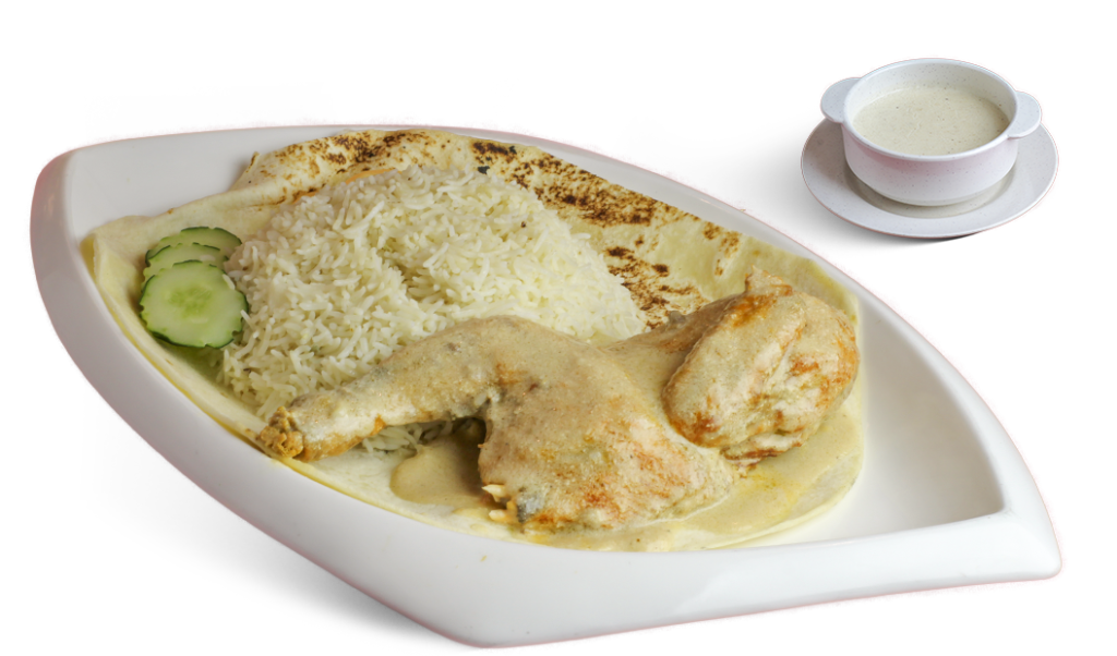 1/4 chicken steamed with rice served with traditional Lebanese sauce
