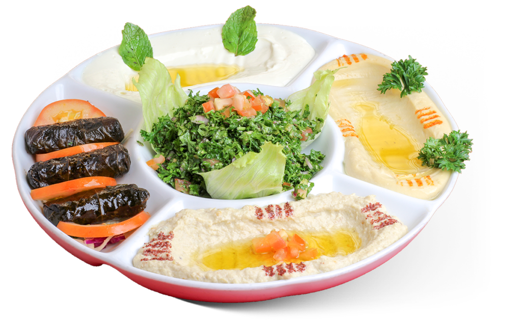 Platter of mix lamb kebab, chicken kebab, shish tawook, beef cubes & lamb arayes served with mix vegetables and bread